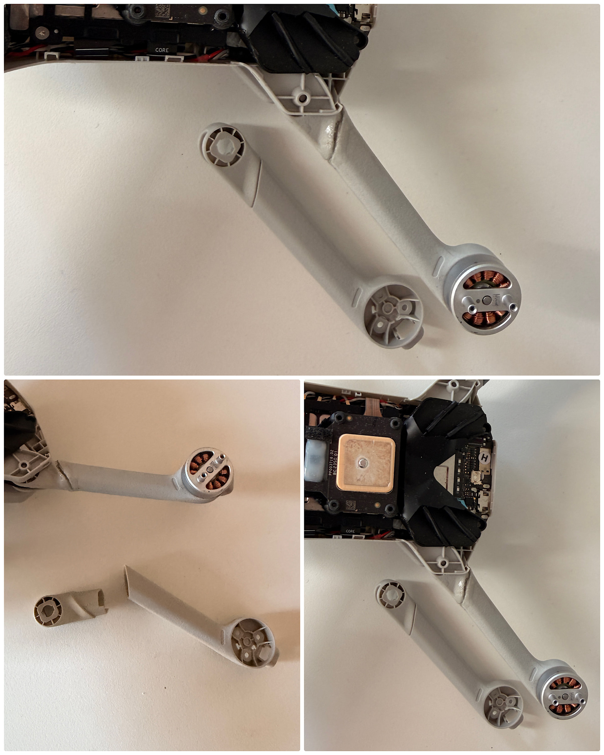 Nu till frågan. Jag har hittat videos när man byter hela armen inklusive motorn. Då måste man in till modekortet osv… Hittade en forumtråd där en ville byta armen men inte motorn precis som jag vill göra och han ville göra detta utan att dissekera drönaren. Enligt svaren i den tråden måste man dock det.